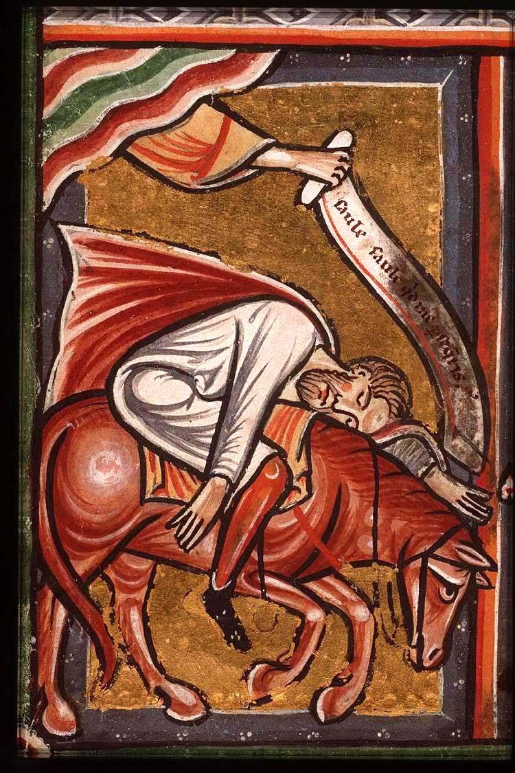 ![13_French master_conversion of Paul Artwork: Conversion of St. Paul, The Artist: UNKNOWN; French Master Date: C. 1200 Technique: Miniature on vellum Location: Koninklijke Bibliotheek, The Hague Notes: From a Picture Bible with miniatures from Northwestern France (manuscript "Den Haag, KB, 76 F 5"). Psalter fragment? Subject: On the Way to Damascus Hosts: Museum Meermanno and Koninklijke Bibliotheek, The Hague: Interactive Presentation of Handwritings [IMAGE]](http://www.associationdemarie.org/blog/wp-content/uploads/2016/01/0125conversion3.jpg)
