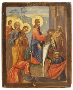 Dans la splendeur des palmes, nous nous prosternons à l’approche du Seigneur.