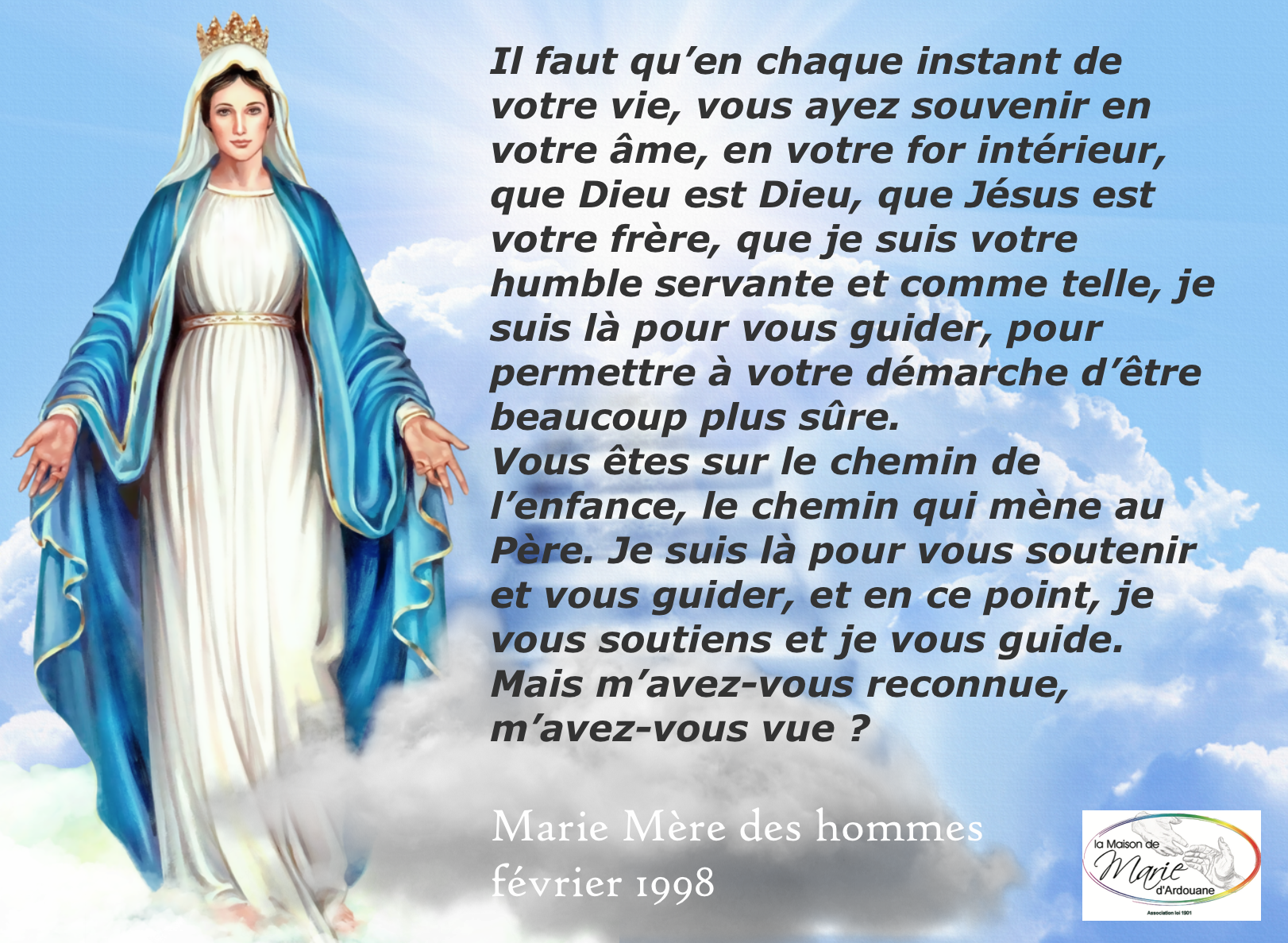 Mots-clefs : Ardouane, Maison de Marie d'Ardouane, Marie Mère des hommes, message