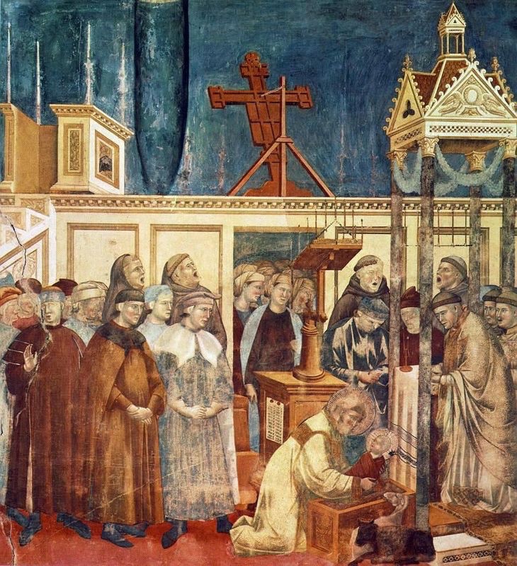 Le jour de joie est arrivé… On a convoqué les frères de plusieurs couvents des environs. Chacun selon ses possibilités, l’âme en fête, les gens du pays, hommes et femmes, ont préparé des torches et des cierges pour rendre lumineuse cette nuit qui a vu se lever l’étoile étincelante qui éclaire tous les siècles. En arrivant, le saint a vu que tout était prêt et s’est réjoui beaucoup. On avait apporté une mangeoire et du foin ; on avait amené un âne et un bœuf. Là vraiment la simplicité était à l’honneur, c’était le triomphe de la pauvreté, la meilleure leçon d’humilité : Greccio était devenu un nouveau Bethléem. La nuit s’est faite aussi lumineuse que le jour et aussi délicieuse pour les animaux que pour les hommes. Les foules ont accouru, et ce renouvellement du mystère a ravivé leur joie. Les bois retentissaient de chants ; les montagnes en répercutaient les échos. Les frères chantaient les louanges du Seigneur, et toute la nuit s’est passée dans la joie. Le saint a passé la veillée debout devant la crèche, brisé de compassion, rempli d’une joie inexprimable. Enfin, on a célébré la messe sur la mangeoire comme autel, et le prêtre a ressenti une ferveur jamais éprouvée jusqu’alors.