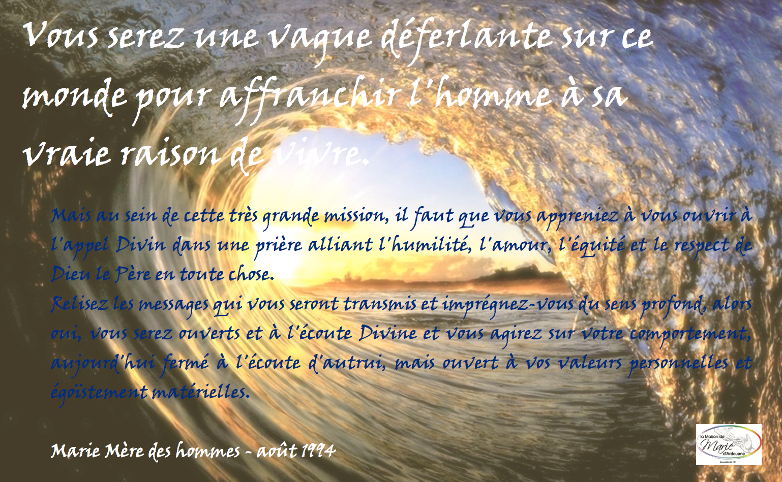 Vous serez une vague déferlante sur ce monde pour affranchir l’homme à sa vraie raison de vivre.