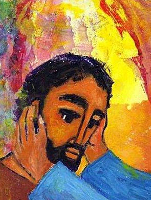 Vient alors Notre Seigneur : il met son doigt sacré dans l’oreille de l’homme, et de la salive sur sa langue, ce qui fait que l’homme retrouve la parole.